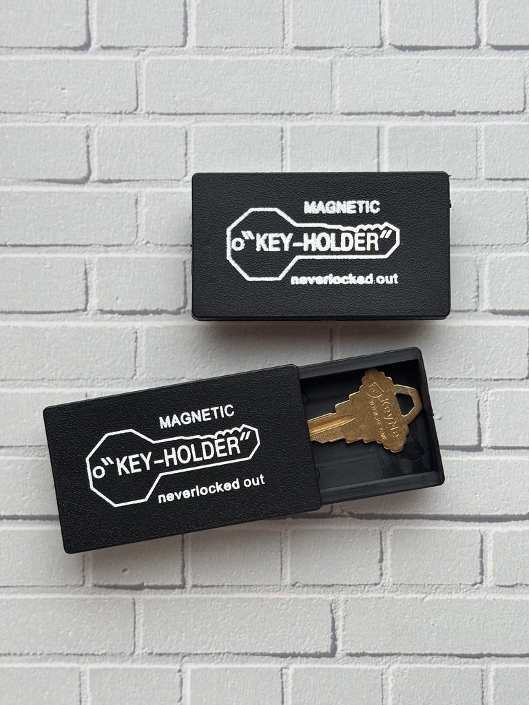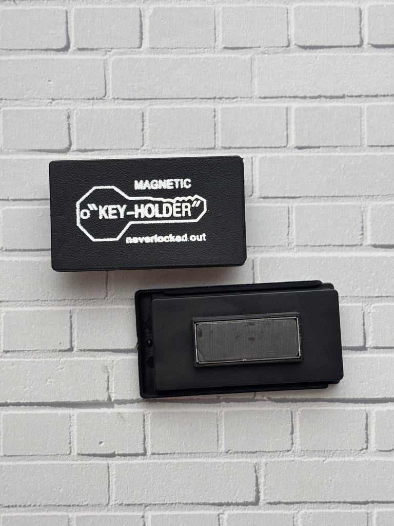 A discreet magnetic key holder designed to securely store a spare key. Features a strong magnet for reliable attachment and a compact design that stays hidden from view. Simple, practical, and easy to use.